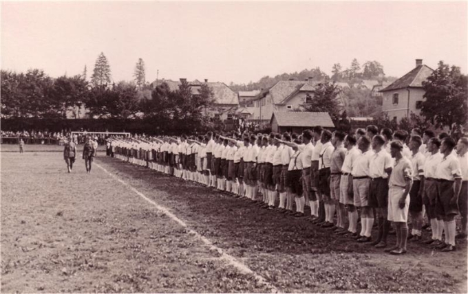 Opis: Celje 1941; prvi javni nastop vermanov v Celju Avtor: fotograf Josip Pelikan